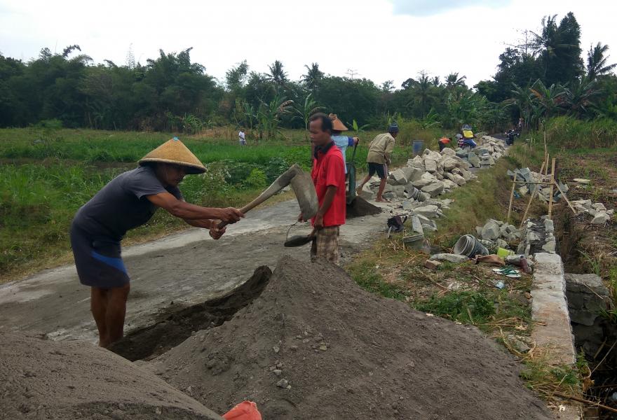 Pembangunan talut di Pedukuhan Karet dan saluran air di Wilayah Pedukuhan Kanggotan ini bersumber dari Dana Desa Tahap I, di samping Corblok jalan lingkungan di wilayah Pedukuhan Kedaton, Gunungan, Kauman dan Pungkuran. Dengan target realisasi dana desa tahap I terserap minimal 75%.