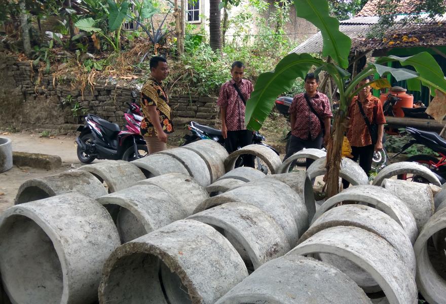 Desa Pleret - Untuk memastikan pelaksanaan pembangunan berjalan sesuai dengan arahan dan aturan, Pemerintah Desa Pleret melalui TPK Pembangnan dan Kasi Kesejahteraan melakukan pemantauan dan pengecekan material bangunan yang akan digunakan.