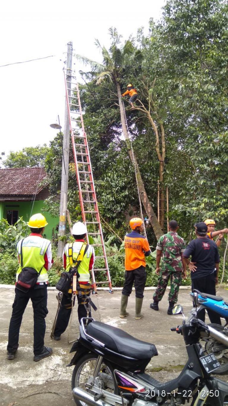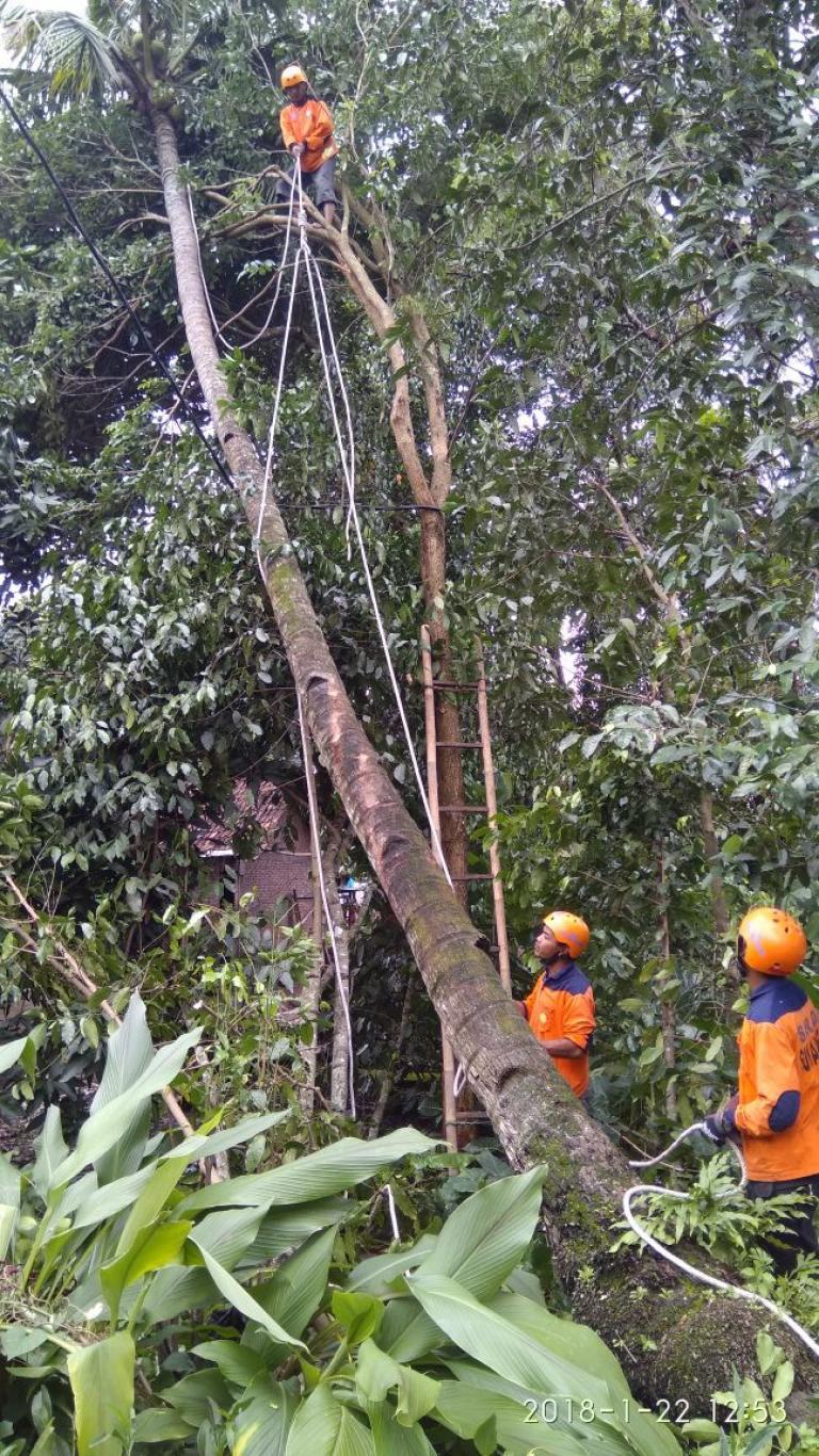infoPleret- Evakuasi pohon ambruk di Dusun Kerto RT 01 pada hari ini jam 12.30 oleh PLN setempat. Kronologi kejadian sekitar pukul 02.00 dini hari tiba-tiba pohon roboh mengenai jaringan listrik dipekarangan milik Ibu Marsiyah (40). Pohon yang tumbang disebabkan karena hujan selama beberapa hari terakhir ini sehingga tanah menjadi gembur dan akar pohon menjadi rapuh. Pohon kelapa yang berdiameter 30 cm roboh mengenai jaringan listrik. Warga setempat dibantu Bapak dukuh, Tim SAR Sultan Agung dan perwakilan dari Polsek dan Koramil, BPDB, PLN sama sama bergotong royong untuk mengevakuasi pohon tersebut.