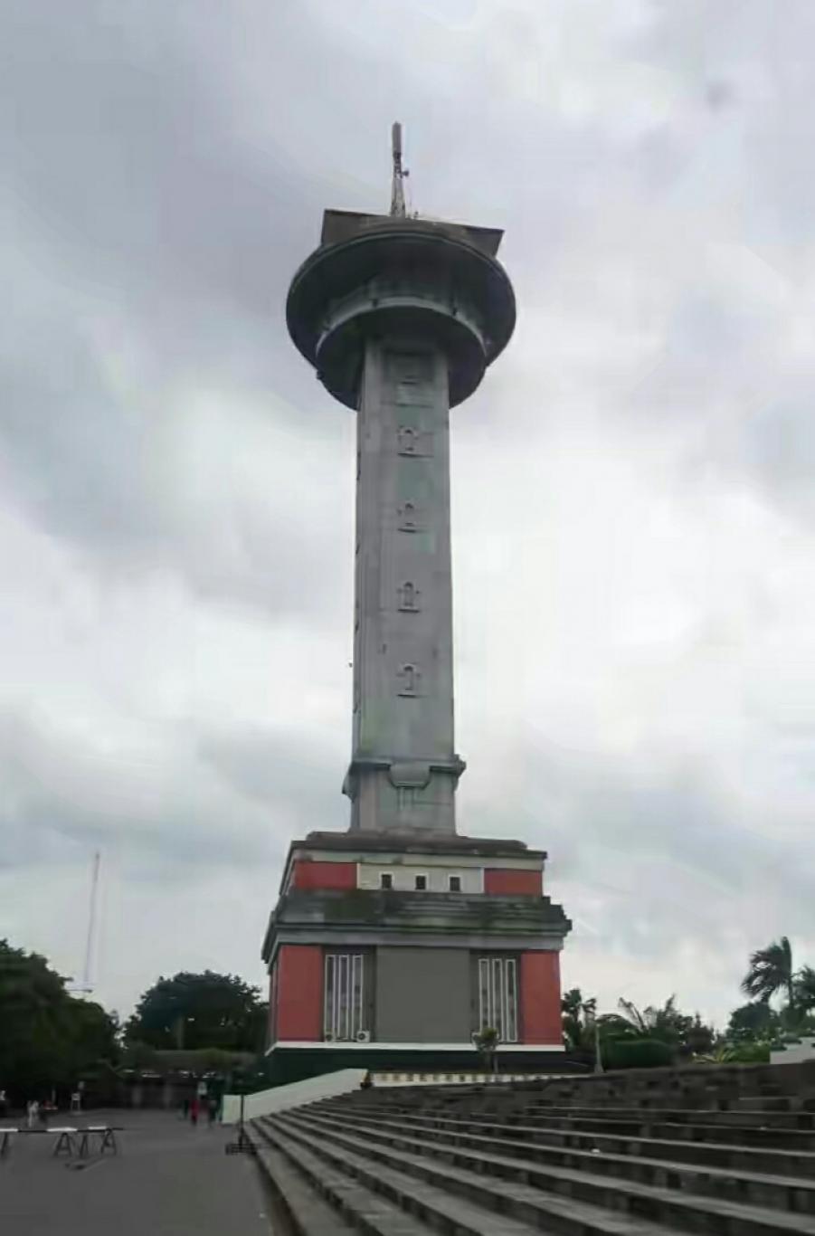 Pertama adalah area Main Gate dan Tiket. Disini adalah cara terbaik untuk bisa naik ke menara yang ada di atasnya, sebab Petualang diwajibkan untuk membayar biaya “perjalanan” sebesar Rp 7.500,- per kepala. Kalau hari libur dipastikan jumlah pengantri dan pengunjung membludak sehingga Petualang harus rela sabar dan duduk-duduk menunggu Petualang lain yang ada di menara turun. Karena memang ada batasan beban maksimal yang harus ditanggung oleh sang menara. Tapi jangan berkecil hati, sambil nunggu antrean bisa kok minum soft drink dan makan snack ringan yang ada di sebelah penjualan tiket.