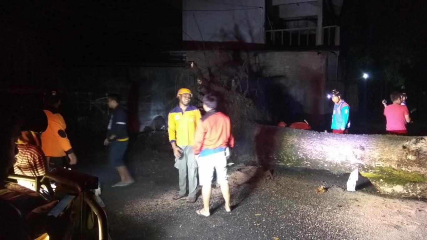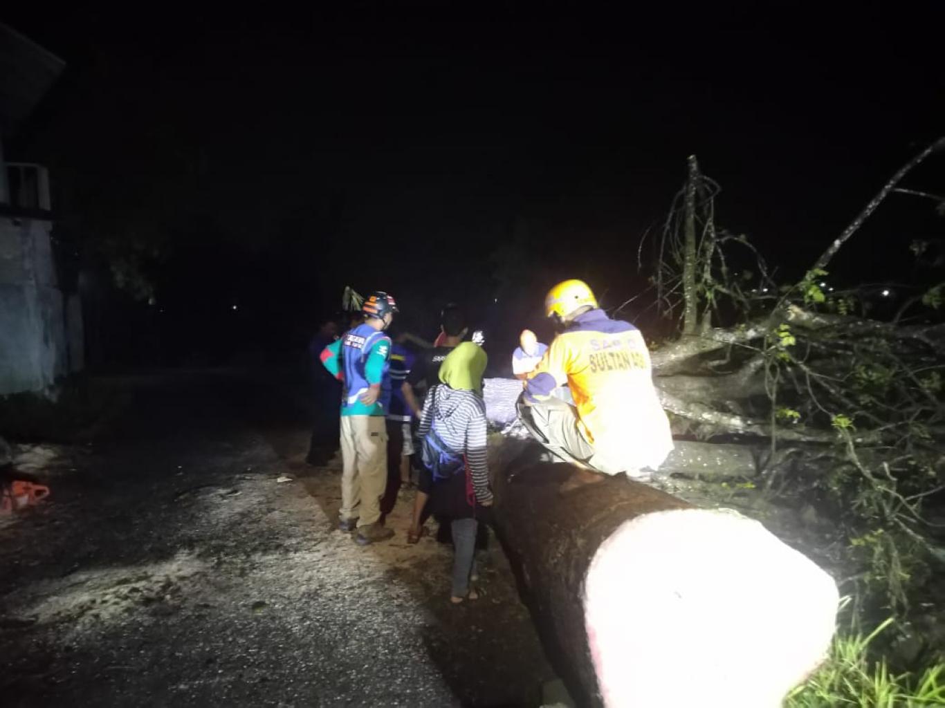 Setelah kejadian, personel gabungan Sultan Agung Rescue, Tagana Bantul, Badan Penanggulangan Bencana Daerah (BPBD Kabupaten Bantul, serta dibantu warga berupaya mengevakuasi pohon tersebut. (iw)