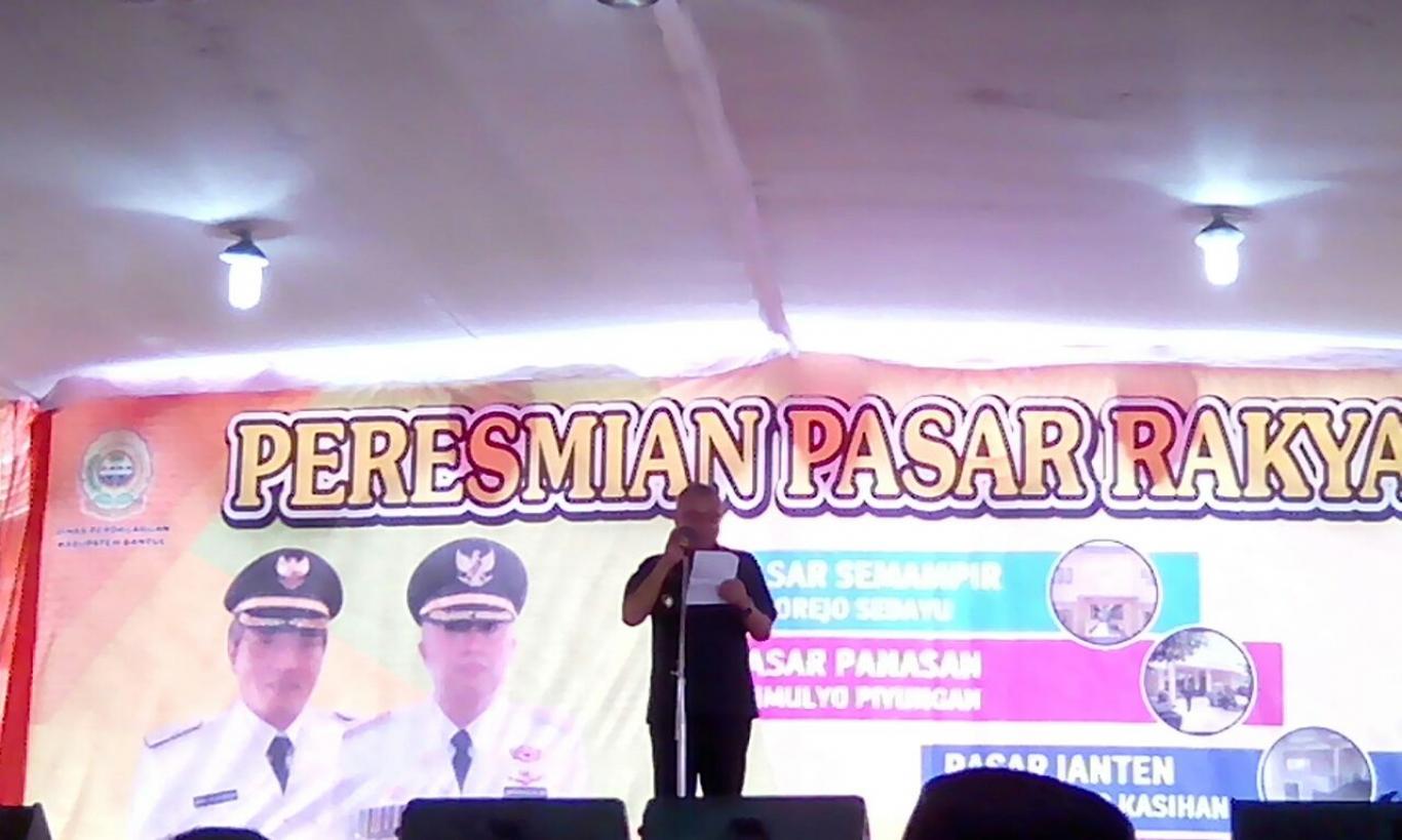 Dalam sambutannya, Bupati Bantul, Bapak Drs. H. Suharsono mengatakan bahwa indikasi keberhasilan pelaksanaan pembangunan suatu daerah dapat dilihat dari peningkatan perekonomian rakyat, tingkat pendidikan dan kualitas kesehatan. Untuk perekonomian bukti fisiknya adalah dengan adanya pembangunan pasar tradisional. "Oleh karena itu acara pagi hari ini merupakan suatu berkah bagi masyarakat Bantul dengan diresmikannya 4 pasar di wilayah Bantul," kata beliau.