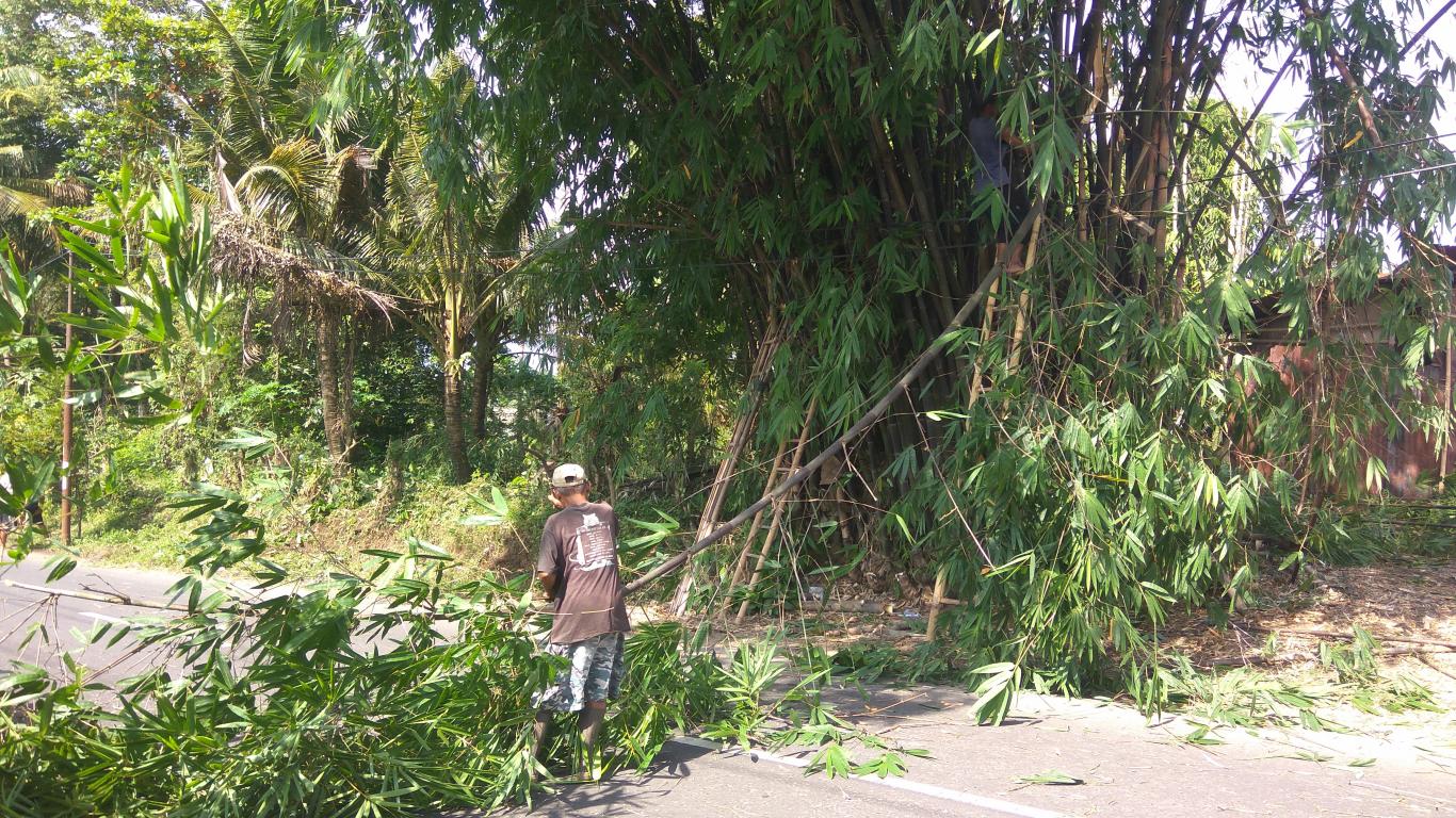 Rumpun pohon bambu yang sebagian batangnya sudah menempel pada kabel instalasi jaringan telepon juga tidak luput dari giat perempelan pagi itu.
