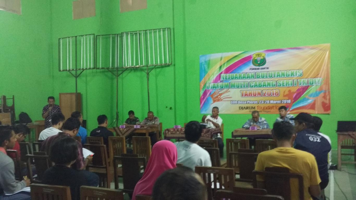 “Sedangkan Manager Meeting peserta sekaligus pembukaan kejuaraan dilaksanakan Jumat (23/3) siang tadi pukul 14.00 di GOR Balai Desa Pleret. Sebenarnya event seri I yang juga disponsori PT Djarum Kudus tersebut dihelat hari ini, tapi diundur sehari. Akibat waktu pelaksanaannya mundur, maka pertemuan antar manager klub peserta yang ikut, juga mundur dan dilaksanakan hari ini. Semula manager meeting diadakan Rabu (21/3) kemarin, tapi akhirnya diundur,” papar Sukiman Hadiwidjojo, selaku Sekum Pengda PBSI DIY.