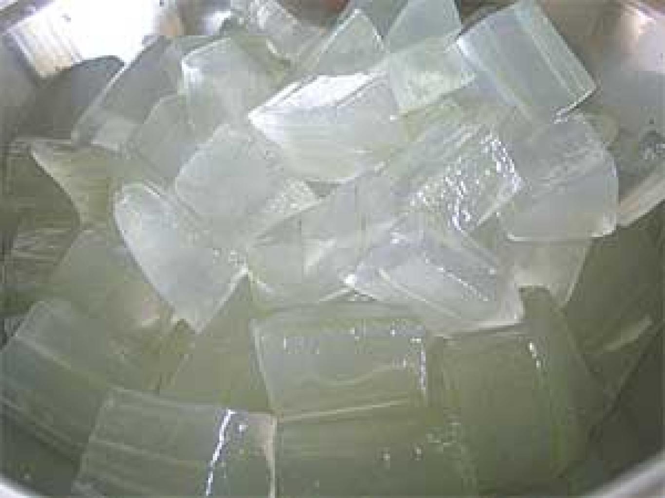 - Bilas potongan daging daun lidah buaya dengan air matang, tambahkan larutan gula sesuai selera