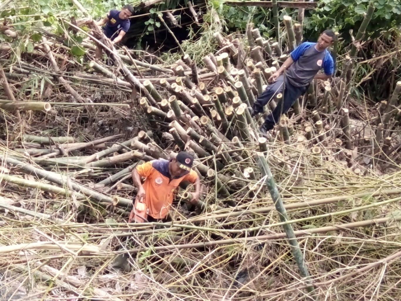 LANCARKAN ALIRAN SUNGAI, Warga Bedukan Kerja Bakti Evakuasi Rumpun Bambu