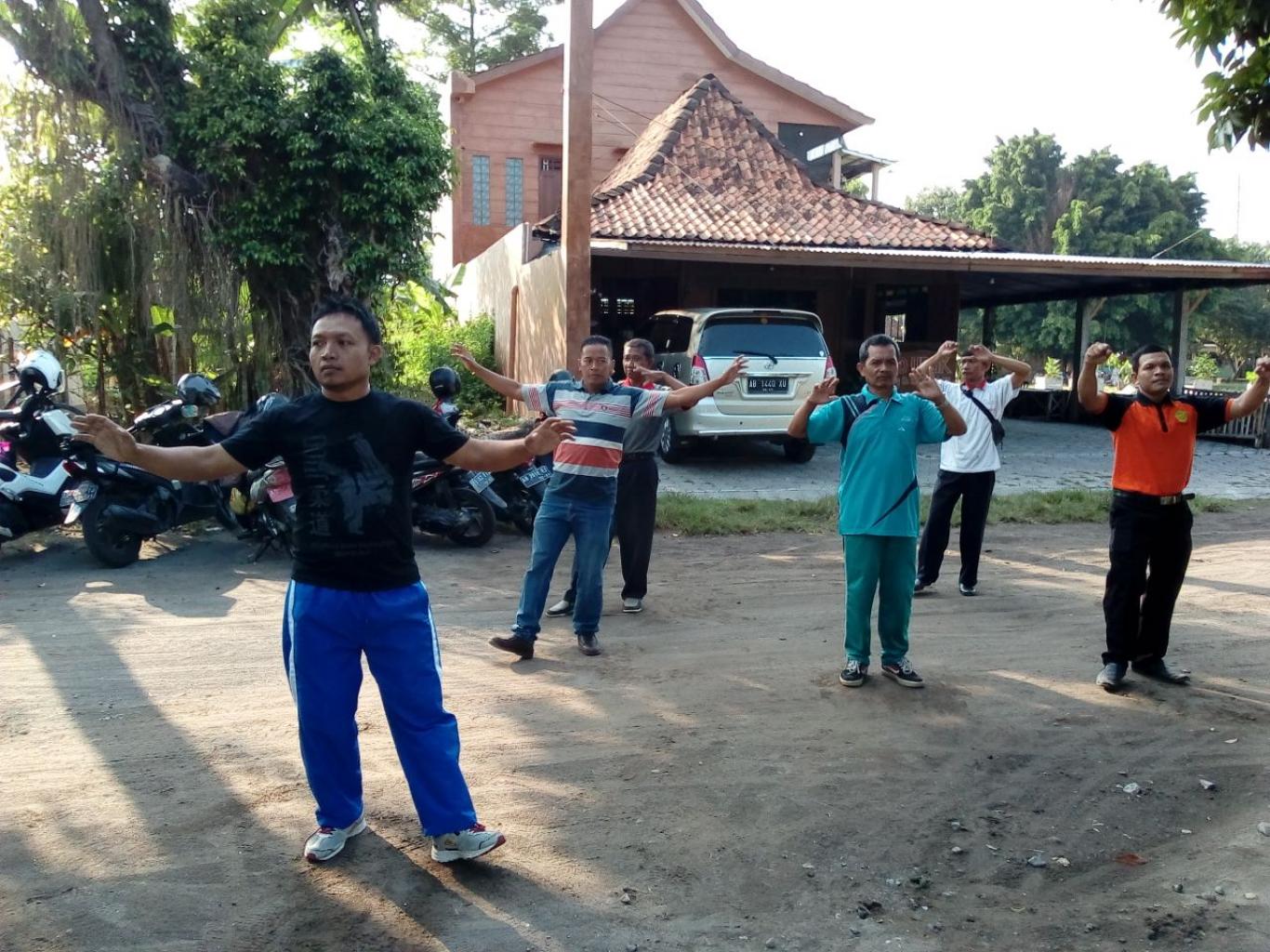 infoPleret- Kecamatan Pleret kembali menggelar Senam Kesegaran Jasmani (SKJ), Jum'at (27/04). SKJ kali ini bertempat di KUA Kecamatan Pleret yang berlangsung meriah. Hadir dalam kesempatan kali ini diikuti oleh seluruh instansi dan pamong desa se Kecamatan Pleret. Sambutan dipimpin oleh Staff Kemasyarakatan Kecamatan Pleret. Dikarenakan Camat Pleret, ada acara lain seusai senam maka beliau yang ditunjuk untuk memberikan sambutan. Acara dilanjutkan sesi istirahat untuk makan makanan yang sudah disediakan oleh pihak KUA Kecamatan Pleret. Dengan menu utama Bakso dari Wonokromo dan beberapa makanan khas seperti pisang godhog, bakwan dan minuman tempoe doeloe yaitu wedang secang yang didatangkan di lokasi senam.