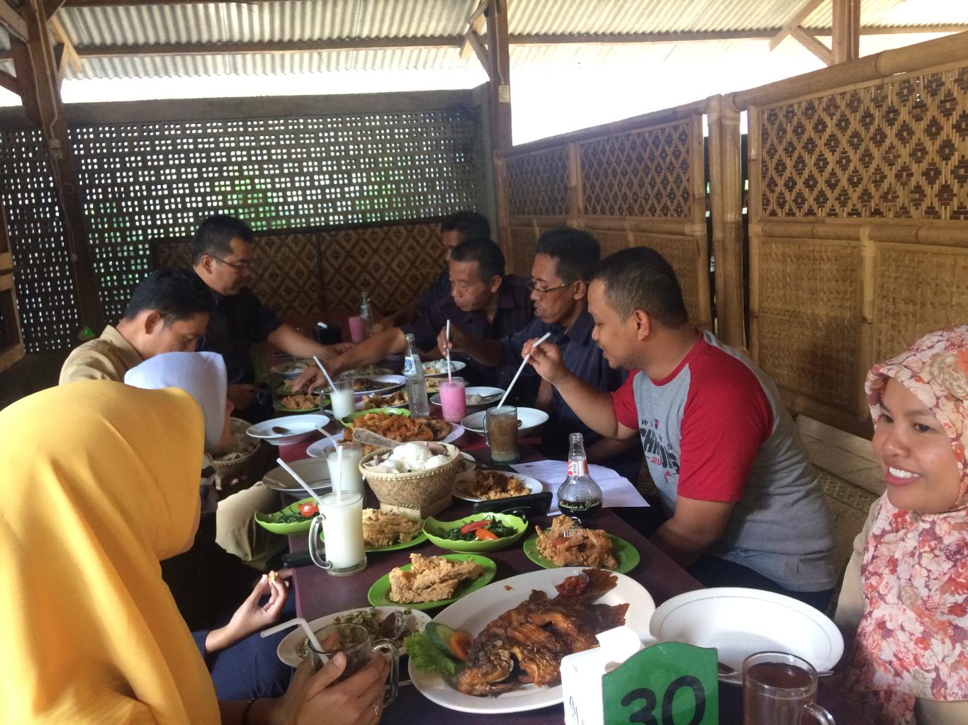 Dan acara dilanjutkan dengan makan bersama . Hidangan yang sudah tersedia seperti gurameh asam manis, tempe goreng, cumi goreng, jamur goreng, ca kangkung langsung bisa disantap.(cyber)