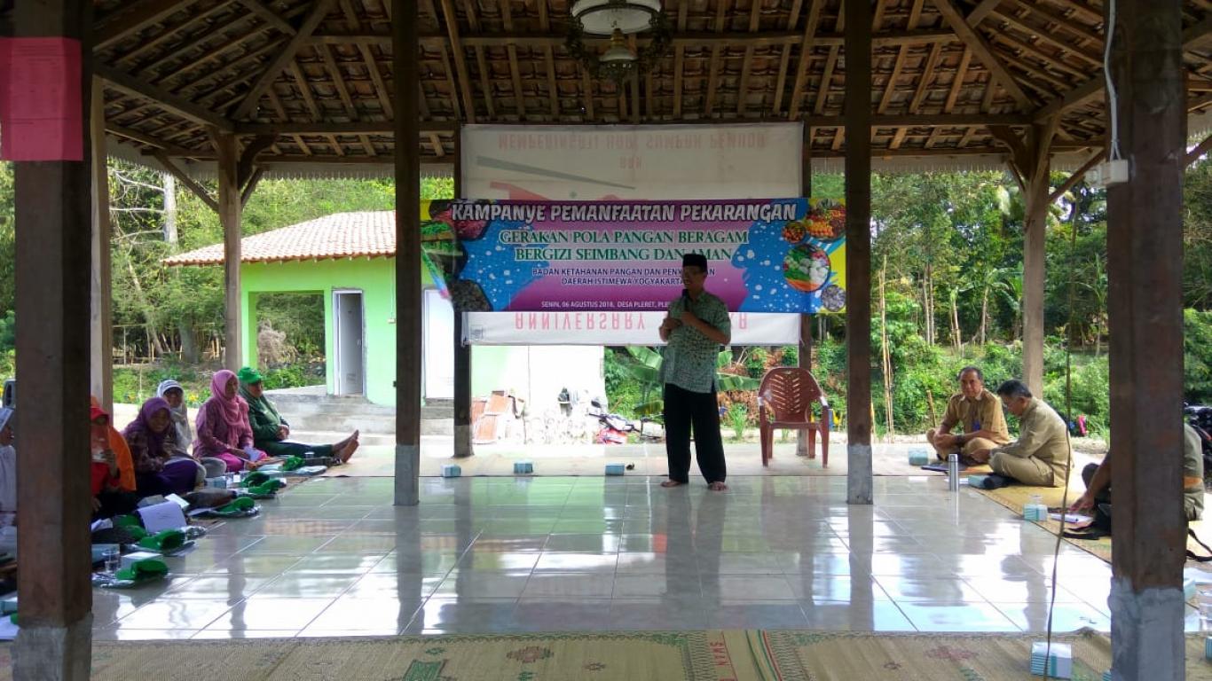 Iwan dalam sambutannya mengucapkan terima kasih kepada semua pihak yg telah membantu hingga terlaksananya kegiatan ini. Juga memberikan apresiasi yg luar biasa utk BKM Pleret, yg sudah menjadi fasilitator dan mengkoordinasi kegiatan sosialisasi pemanfaatan lahan pekarangan. Di akhir sambutannya menyampaikan, agar masyrakat bisa berperan sebagai konsumen dan sekaligus produsen. Dengan semikian akan senada dg slogan "tanam yang kita makan, makan yg kita tanam.