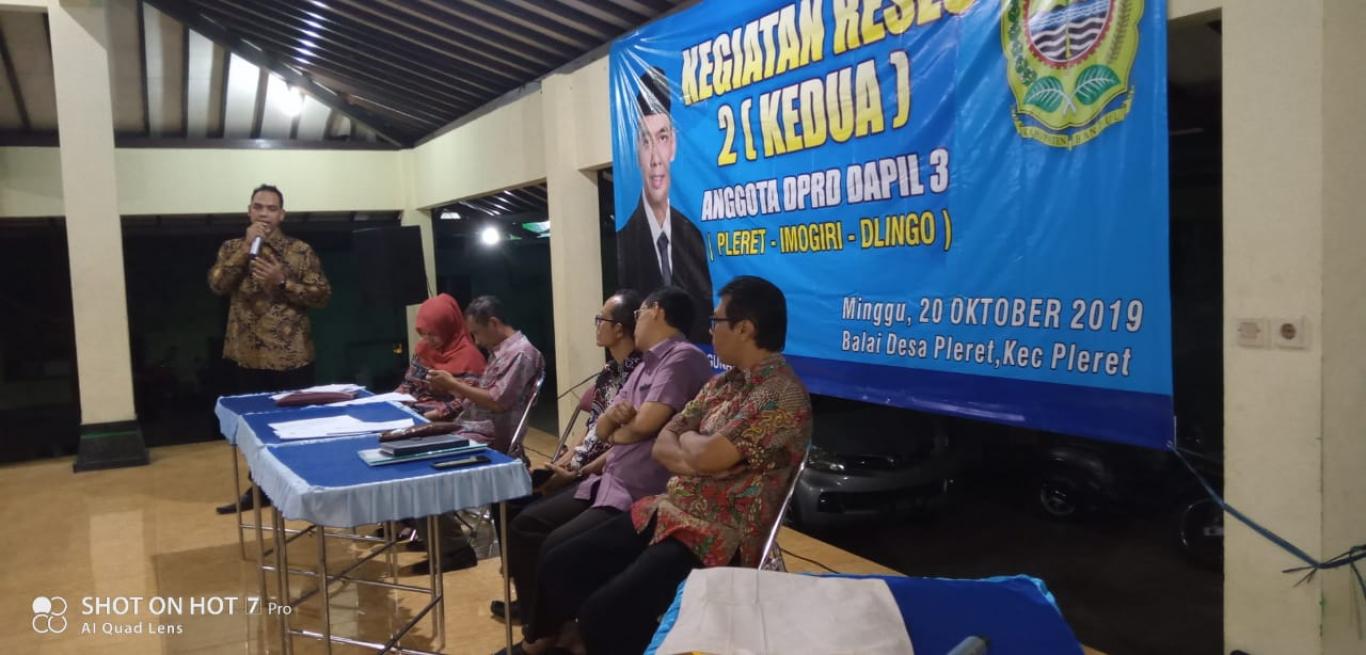 Minggu tanggal 20 Oktober 2019 pukul 20.00 WIB di Pendopo Balai Desa Pleret, Bantul telah dilaksanakan Reses Anggota DPRD Kabupaten Bantul Dapil III dari Partai Demokrat Bapak Roni Wijaya.