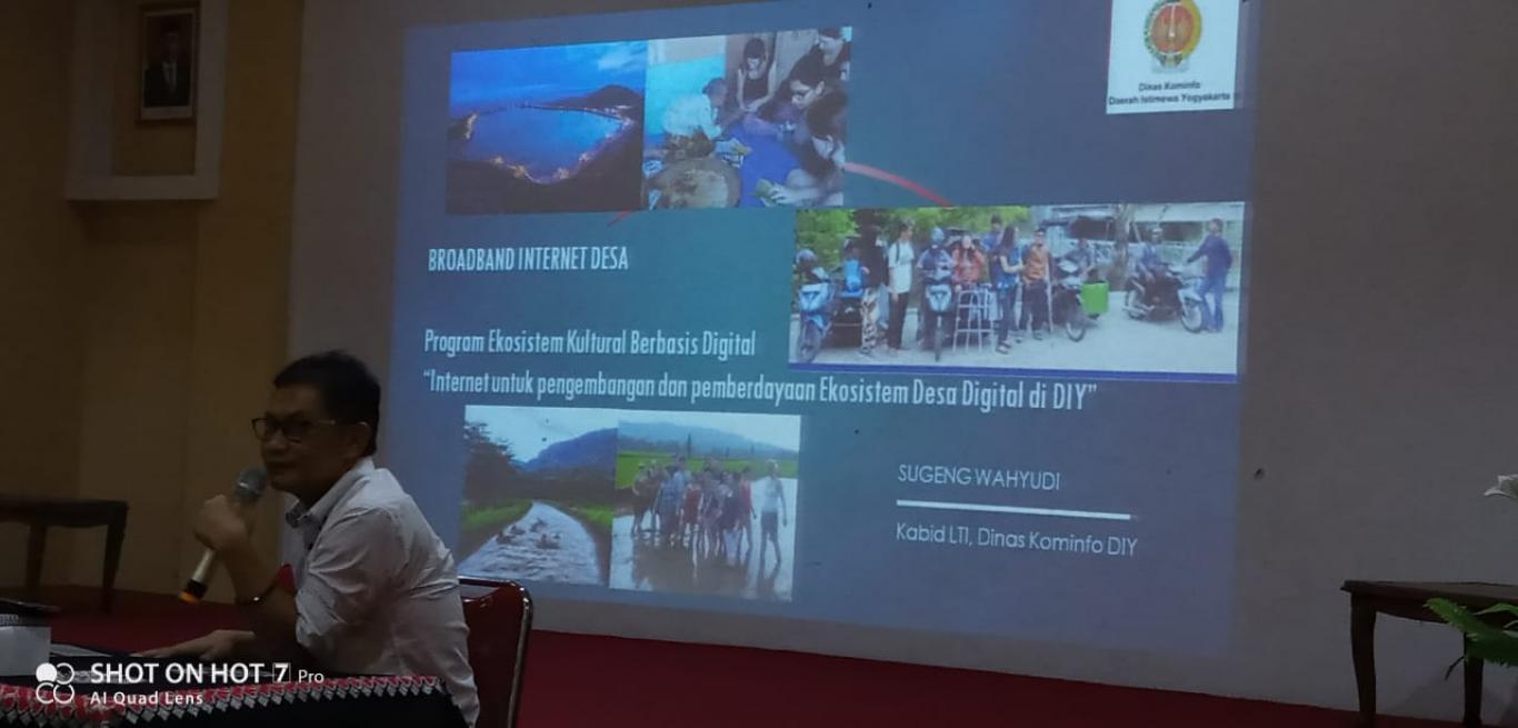 Sedangkan Bapak sugeng wahyudi Kabid LTI, mewakili kepala dinas Kominfo DIY menyampaikan perlunya Broadband Internet desa, internet untuk pengembangan dan pemberdayaan ekosistem desa digital di DIY