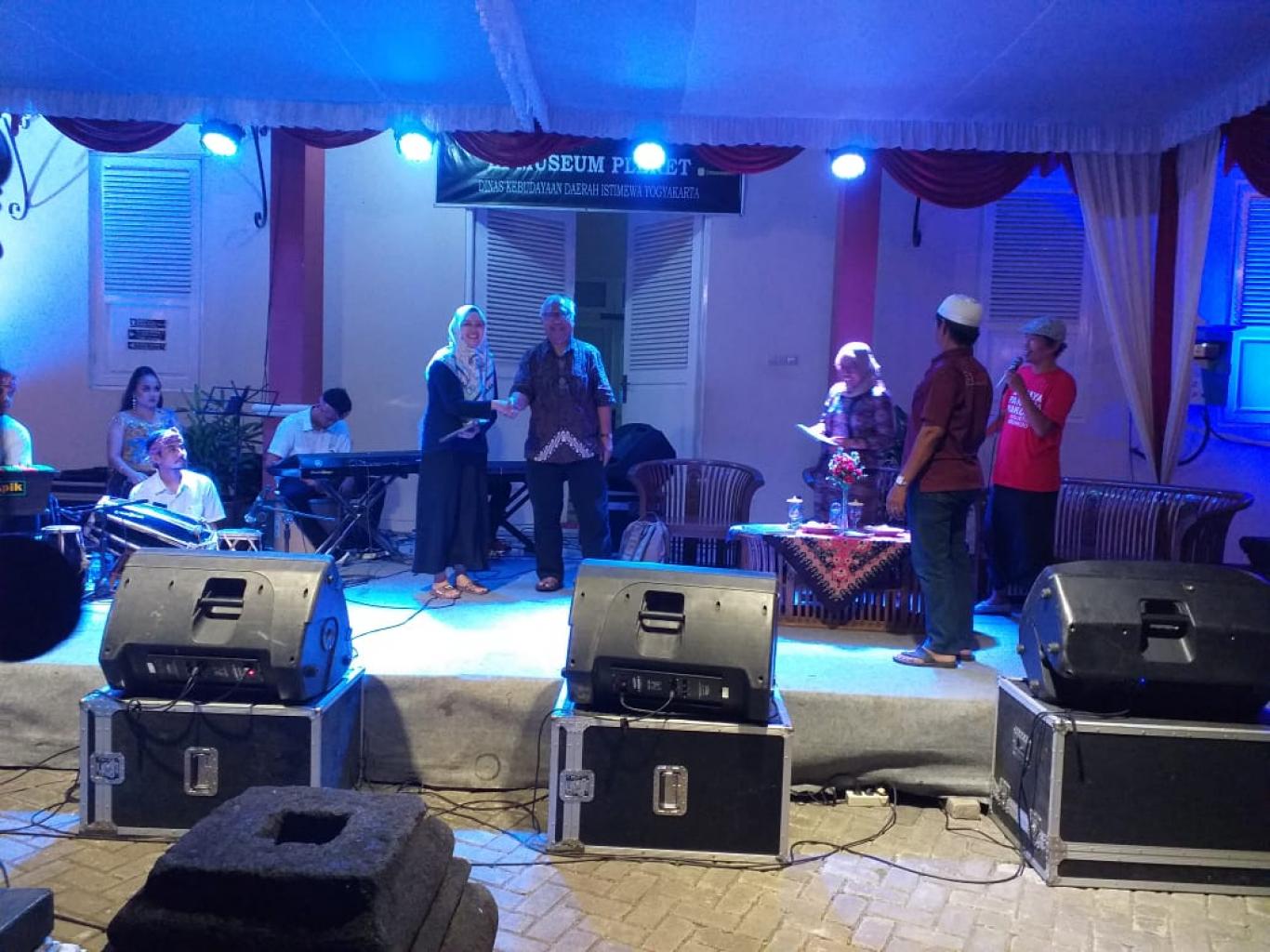 infoPleret- Senin, 18 November 2019 Tim SID menyempatkan hadir dalam dialog budaya. Seusai dialog seluruh yang hadir diberikan kesempatan untuk bertanya seputar sejarah terjadinya Pleret, runtuhnya Pleret, dan pemeliharaan situs yang masih ada di wilayah Pleret. Karena keberaniannya untuk sharing kepada moderator, maka panitia memberikan doorprize berupa buku dengan judul "Goresan Peradaban" seri 1 Kumpulan Ragam Warisan Budaya Takbenda Daerah Istimewa Yogyakarta seperti dalam gambar. Selanjutnya TIM juga akan menyebarluaskan seluruh rangkaian acara yang digelar oleh panitia melalui medsos dan jejaring lainnya. (jz12gws)