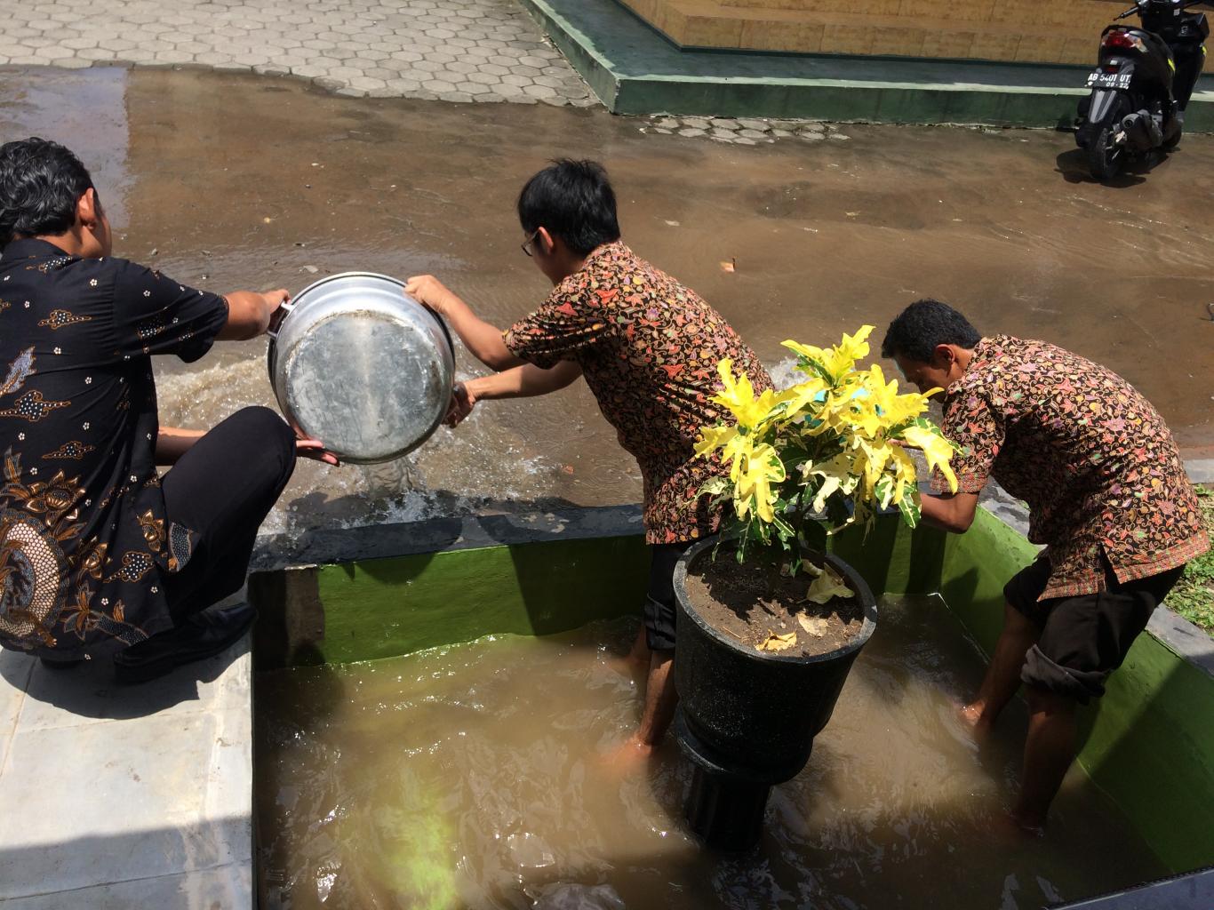 infoPleret- Kolam ikan yang keruh akibat kotoran ikan, sampah dari daun – daun kering, dan debu yang terbawa angin masuk ke kolam dan berbagai sampah, kotoran membuat tampilan kolam kotor, jorok, dan tidak sehat. Maka Pemerintah Desa Pleret dengan memiliki inisiatif untuk menguras kolam yang memiliki ukuran 3 m x 1m. Aksi ini dipelopori oleh Kaur TU dan Umum, Rifki Fatoni yang merasa bahwa kolam tersebut sudah terlalu keruh dan banyak pasir. Rifki Fatoni berharap seluruh Pamong Desa Pleret dapat sadar diri akan kebersihan lingkungan tempat kerja agar kedepannya menjadi pribadi yang lebih baik.