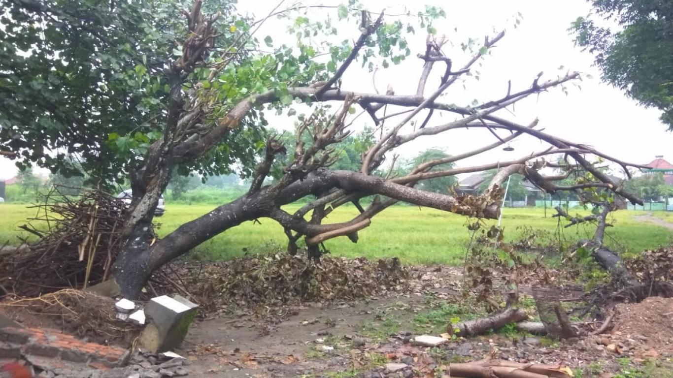 infoPleret- Hujan deras disertai angin kencang membuat sejumlah pohon di daerah Pleret tumbang, salah satunya di Lapangan Sultan Agung Pleret Bantul. Proses evakuasi pohon tumbang dilakukan oleh Tim Gabungan dari FPRB, Elite Rescue Desa Pleret dan warga sekitar yang terlibat. Pohon yang tumbang tidak menimbulkan korban jiwa, akan tetapi pohon yang tumbang tersebut mengganggu jalan akses masyarakat. Maka dari itu Tim Gabungan memotong pohon tumbang yang menjulur ke jalan.