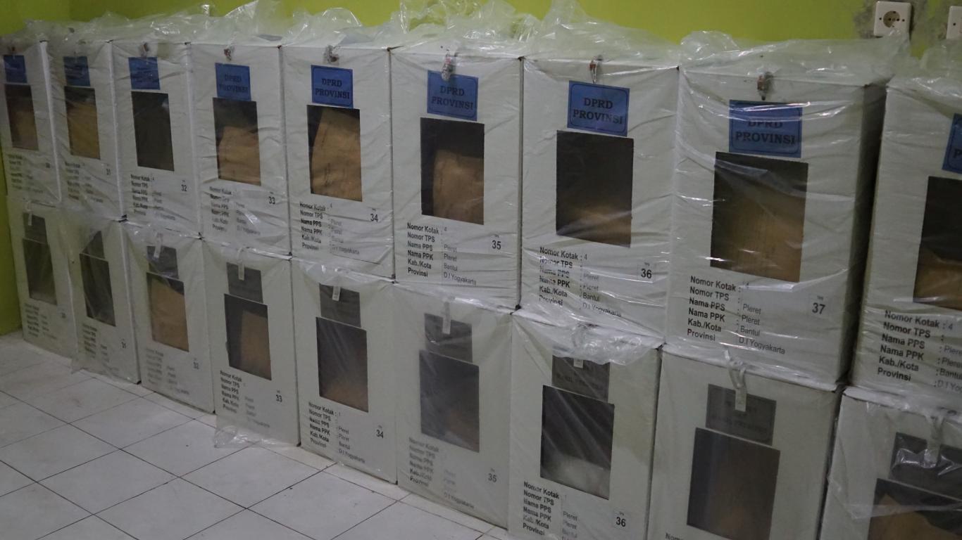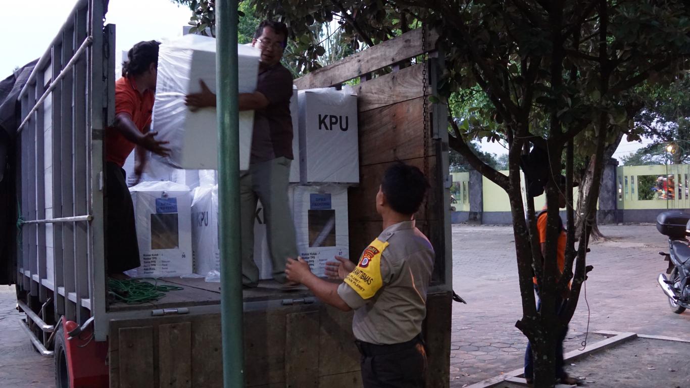 Yang telah sampai di PPS sebanyak 123 kotak terdiri dari DPRD kabupaten 41 kotak, kotak suara Presiden 41 kotak dan 41 kotak lagi DPRD propinsi.