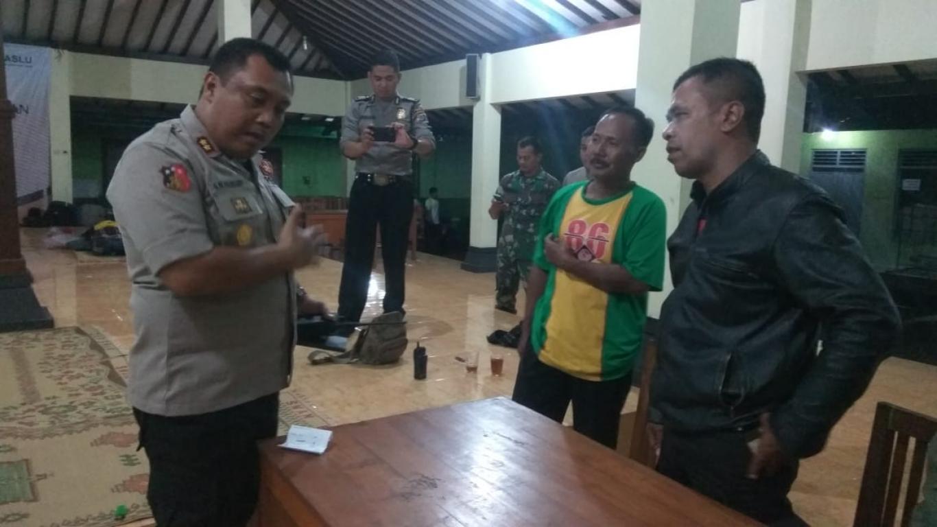 Kapolres Bantul AKBP Sahat Marisi Hasibuan SIK MH didampingi Kapolsek Pleret AKP Sumanto, SH dan Danramil Pleret Kapten Arm M. Bambang S menyambangi tempat penyimpanan surat suara pemilu 2019 di PPS Desa Pleret, Senin (15/04/2019) malam.