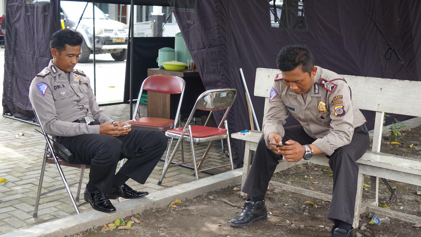 infoPleret- Semenjak didirikan Posko pantauan dan penjagaan kotak hasil pemungutan suara yang ditampung di aula kecamatan Pleret Polsek Pleret yg dipimpin langsung Kapolsek dan anggota dari Polres yang ditugaskan di kecamatan Pleret .