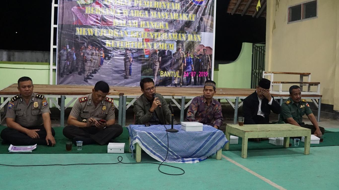 infoPleret- Satpol PP Kabupaten Bantul menggelar acara safari Kamtibmas bekerjasama dengan Polres Bantul pada hari Rabu, 24 Juli 2019 bertempat di halaman Masjid Riyadus Sholihin Gunungan. Acara dipandu oleh takmir masjid, Yuono Purwanto, SP. Hadir dalam kesempatan tersebut Camat Pleret yang diwakili oleh Kasi Trantib, Kapolsek dan Danramil Pleret, dan sebagian Pamong Desa serta perwakilan masyarakat Gunungan.