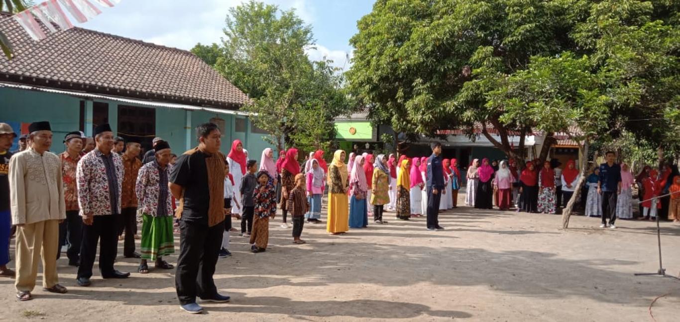 infoPleret- Warga masyarakat Kedaton Wetan melaksanakan upacara peringatan Hari Ulang Tahun Republik Indonesia ke-74 pada hari Sabtu, 17 Agustus 2019 di halaman rumah Bapak Supramto, Kedaton RT 06. Bertindak sebagai Inspektur Upacara, Dukuh Kedaton, Bapak Suwardi dan pemimpin upacara Sdr. Rajuli Afwan.