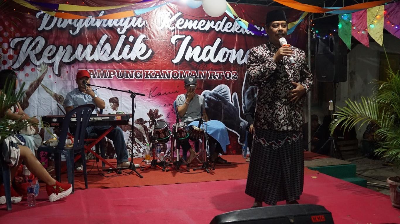 infoPleret- Dalam momen yang sama , warga RT 001 dan RT 002 Pedukuhan Pungkuran bertempat di wilayah RT 002 digelar acara malam tirakatan dan diwarnai dengan hiburan organ tunggal untuk menghibur masyarakat dan sesekali disampaikan baik dari tokoh masyarakat maupun pemerintah desa tentang arti perjuangan. karena menurut Lurah Desa Pleret yang juga memberikan sambutannya bahwa arti perjuangan dapat disampaikan melalui media apa saja, baik dari kesenian, sosial budaya, dan yang lainnya. Lurah berpesan kepada masyarakat khususnya di wilayah RT 001 dan RT 002 Pedukuhan Pungkuran untuk selalu mendukung program pemerintah guna meningkatkan taraf hidup masyarakat kedepan. (jz12gws)
