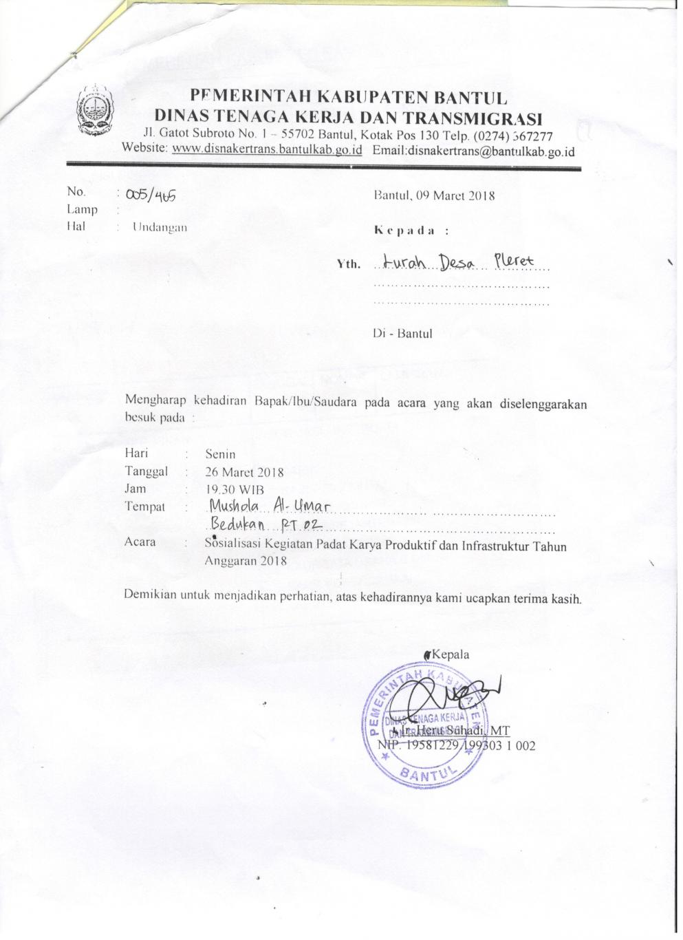Serah terima jabatan, sekaligus pengambilan sumpah dan pelantikan rencananya akan dilaksanakan besok Rabu, tanggal 22 Januari 2020 bertempat di Pendopo Balai Desa Pleret.