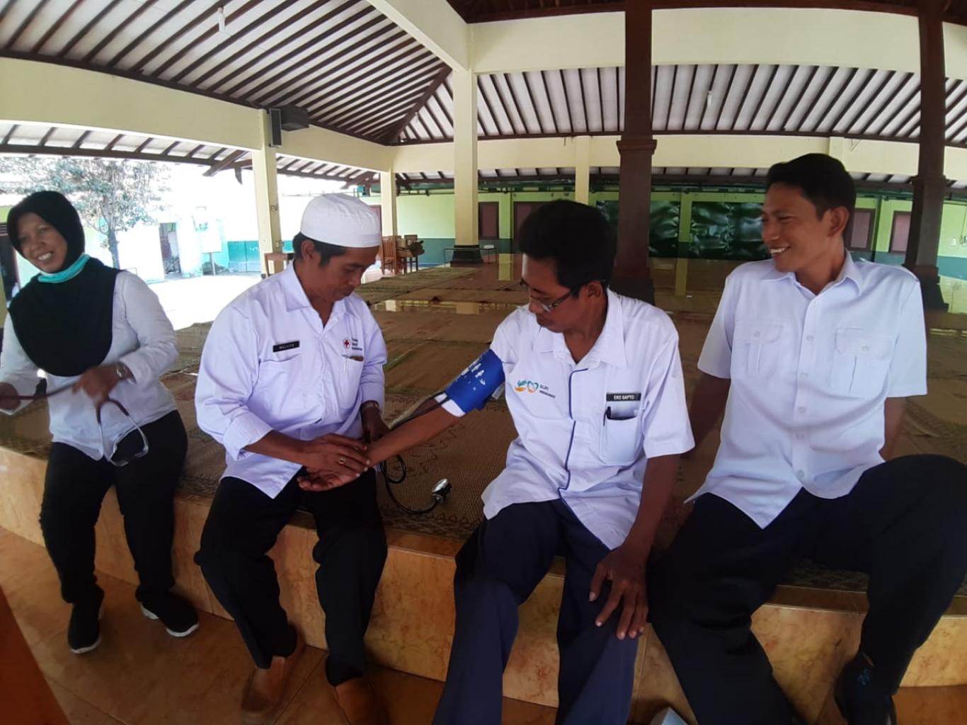 Bertempat di Pendopo Pleret, 30 Januari 2020, relawan PMI Desa Pleret belajar cara menggunakan alat tensi darah. Diajar oleh Bidan Desa Endang Purwaningsih, para relawan ini dibekali keahlian cara mengukur tensi darah dengan alat manual pompa dan stetoskop. Salah satu dari peserta, Waluyo mengatakan bahwa "belajar alat tensi ini sangat berguna dalam membekali relawan, terutama relawan PMI Desa". Harapan dari kegiatan ini adalah relawan bisa membantu petugas kesehatan bilamana diperlukan. CM-005