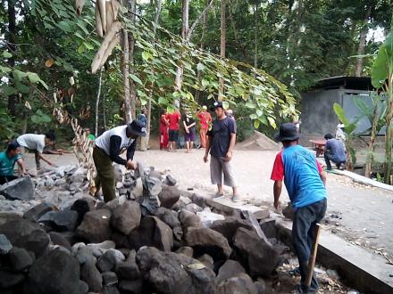 Gotong royong dipimpin langsung oleh ketua RT.04 Bp. Dahron Widodo dan koordinator komunitas peduli sungai Gajahwong Bp. Arwani. Diharapkan dengan anggaran rehab talud jalan dari pemerintah desa ini bisa meminimalisir terjadinya banjir yang sering terjadi setiap musim penghujan tiba. (Rif)