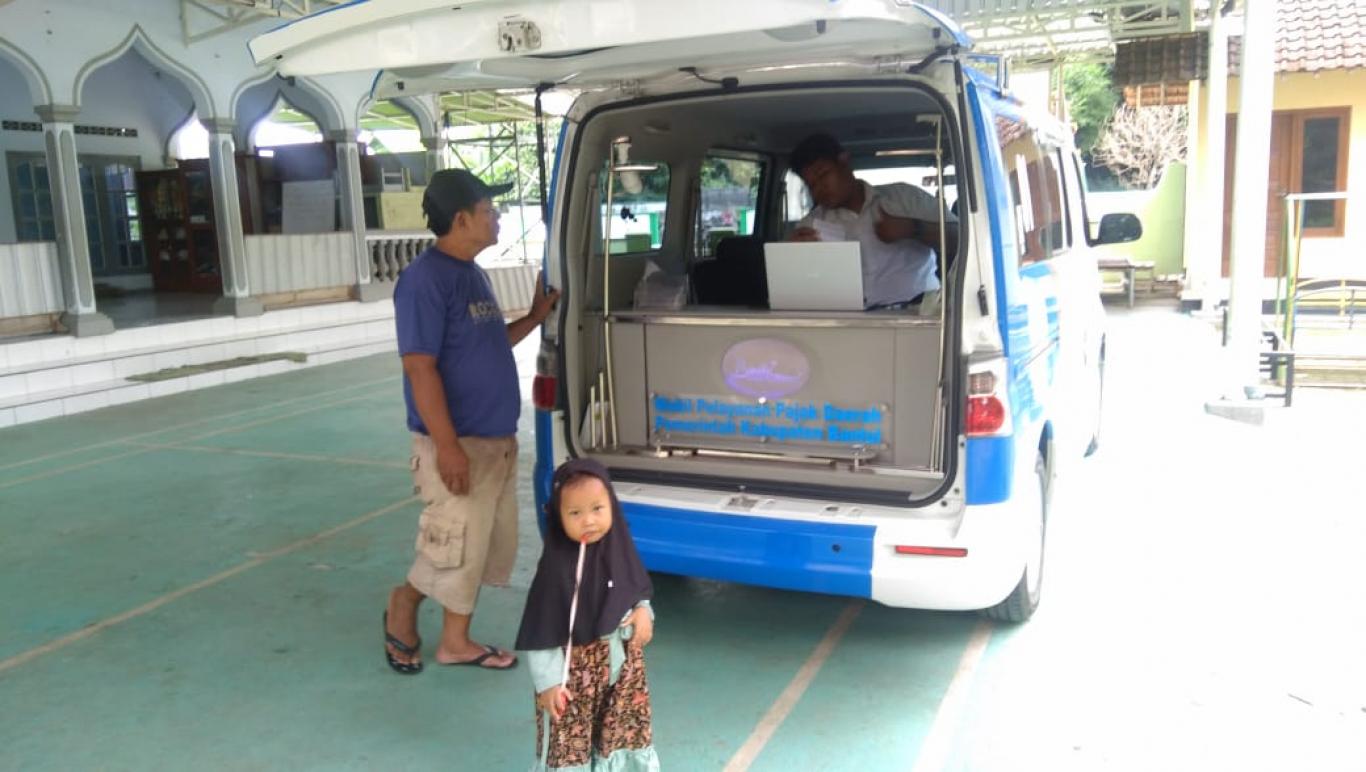 infoPleret- Rabu, 18/03 mobil keliling PBB singgah di Pedukuhan Gunungan. Pajak Bumi dan Bangunan merupakan kewajiban warga untuk dibayar tepat waktu. Setelah pendistribusian di awal tahun 2020 ini, mobil keliling PBB langsung menindaklanjuti ke tingkat padukuhan untuk memberikan kemudahan pembayaran kepada masyarakat. Setelah dukuh Gunungan mengumumkan ke warga bahwa pembayaran pajak bumi dan bangunan dapat dilayani di halaman masjid Riyadush Sholihin pukul 12.00 - 14.00 WIB, warga menyambut baik dengan melakukan pembayaran PBB. Dibuktikan dengan adanya 74 transaksi senilai kurang lebih 5,5 juta rupiah, warga senang karena dihadiri oleh kaur keuangan dan staf Desa Pleret yang memberikan merchandise kepada15 orang pertama. Diharapkan dengan adanya mobil keliling ini kesadaran membayar pajak tepat waktu menjadi kebiasaan rutin setiap tahunnya. Cm 102/supri