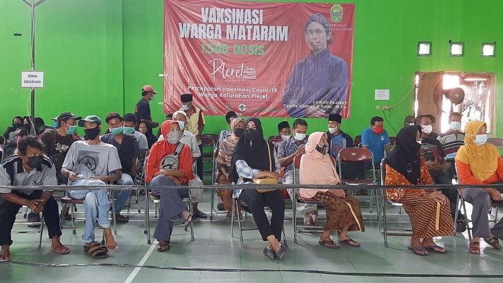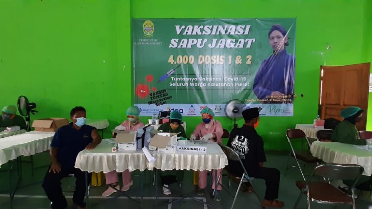 Info Pleret - Kamis (28/10) Vaksinasi Sapu Jagat hari ke 2 kembali dilaksanakan di Gedung Olahraga Kalurahan Pleret. Bekerja sama dengan Kapanewon Pleret dan Dinas Kesehatan Kabupaten Bantul, kegiatan ini menyediakan 3000 dosis pertama jenis vaksin Astra Zeneca dan Sinovac yang diperuntukkan bagi masyarakat umum Kalurahan Pleret yang belum mendapatkan vaksinasi sama sekali, namun masyarakat di luar Kalurahan Pleret tetap diperbolehkan untuk mendapatkan vaksinasi ini hanya dengan syarat membawa data diri berupa KTP.