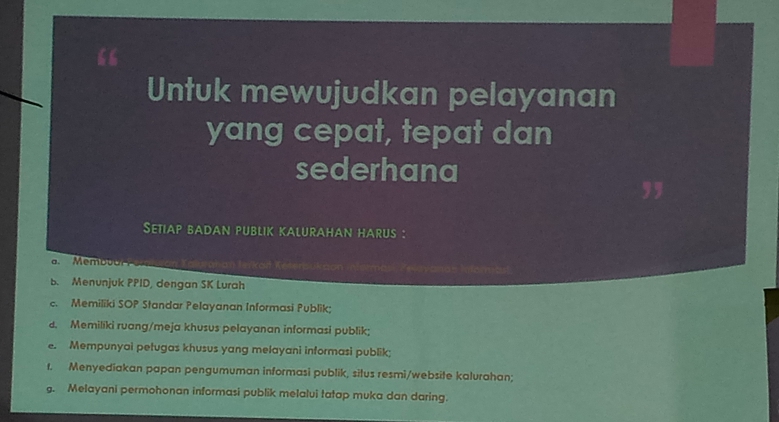 Dalam kesempatan ini sebagai narasumber pertama dari Kepala Bidang Pengelolaan Informasi dan Komunikasi Publik bapak Arif Darmawan, S.S.T.P. menyampaikan regulasi tentang pentingnya Informasi Publik dari lembaga pemerintahan termasuk di dalamnya Pemerintah Kalurahan. Dimasa revolusi industri 4.0 ini semua kalurahan harus siap dengan digitalisasi informasi untuk menyampaikan informasi kepada masyarakat di wilayahnya masing-masing, baik lewat website kalurahan maupun media sosial lainnya seperti Facebook, Twitter, Istagram, YouTube dll.