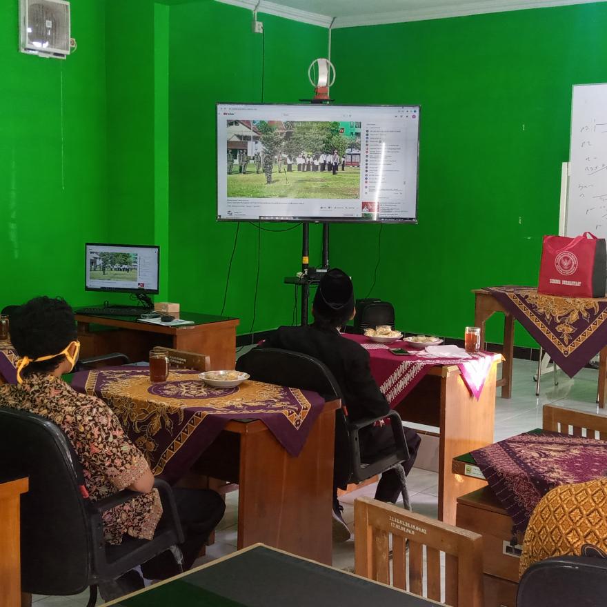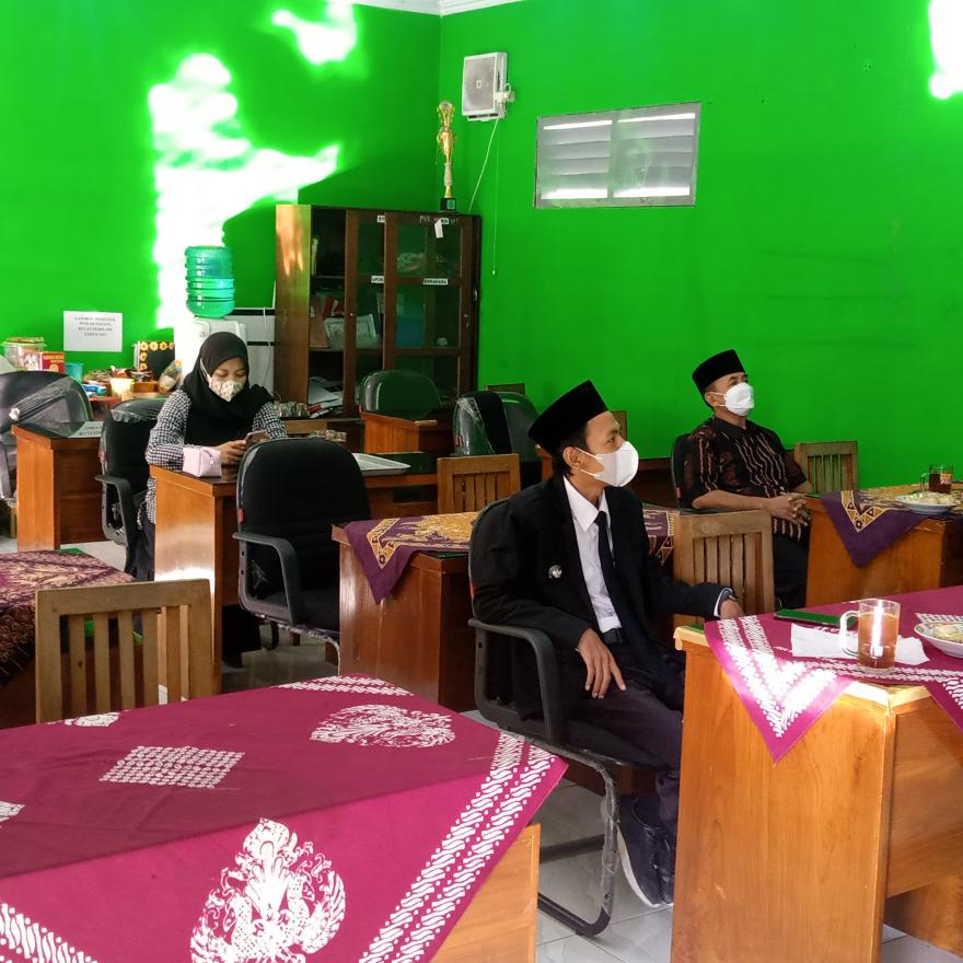 info pleret - Selasa 17 Agustus 2021 jam 07.00 WIB, Lurah Pleret, Carik, Ketua TP PKK, Ketua Bamuskal, dan Tata Laksana beserta staf menghadiri Upacara Virtual Peringatan Hari Ulang Tahun Kemerdekaan Republik Indonesia yang ke - 76 di ruang rapat kantor Kalurahan Pleret.