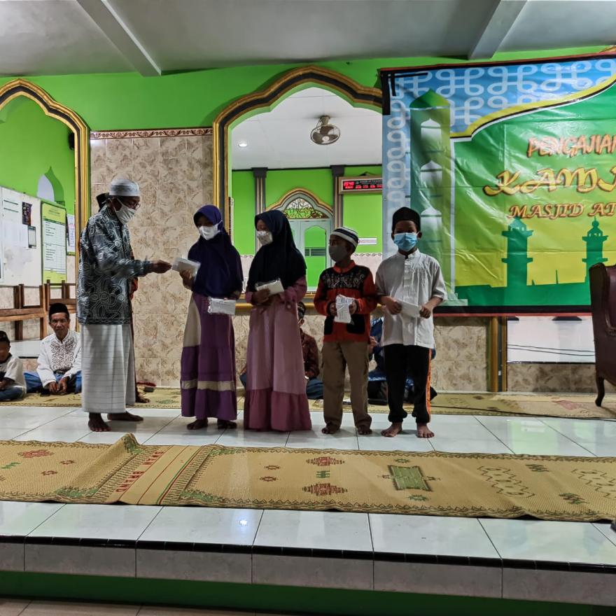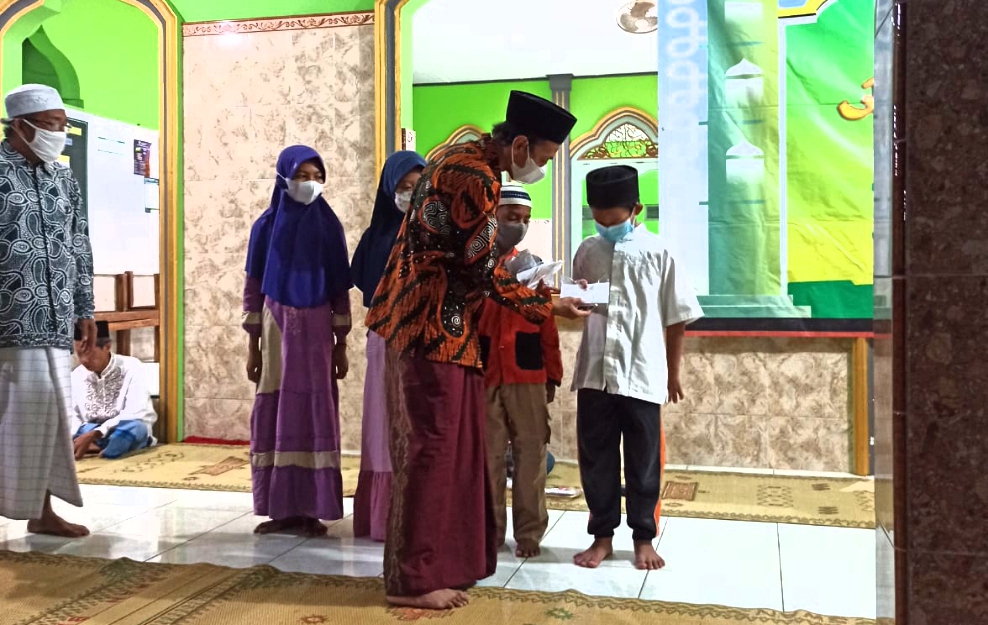 info pleret - Rabu, 18 Agustus 2021 jam 20.00 WIB, atau bertepatan dengan malam tanggal 10 Muharram bertempat di masjid At-Ta'Awun, Warga masyarakat kanggotan/ Jamaah masjid At Ta'Awun kanggotan melakukan santunan terhadap 8 Anak Yatin/ Piatu dan 16 Duafa yang berada di RW.05 Kanggotan.