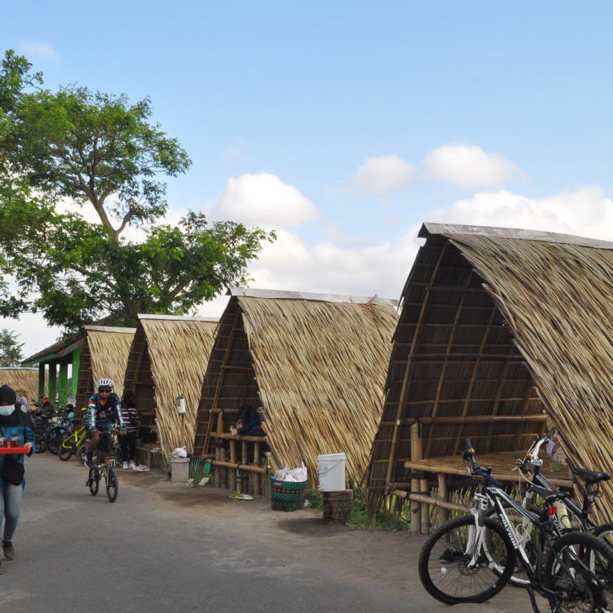 Di Mbulak Wilkel disediakan fasilitas gubug-gubug yang digunakan pengunjung untuk duduk santai menikmati kuliner dan semilirnya angin sawah.