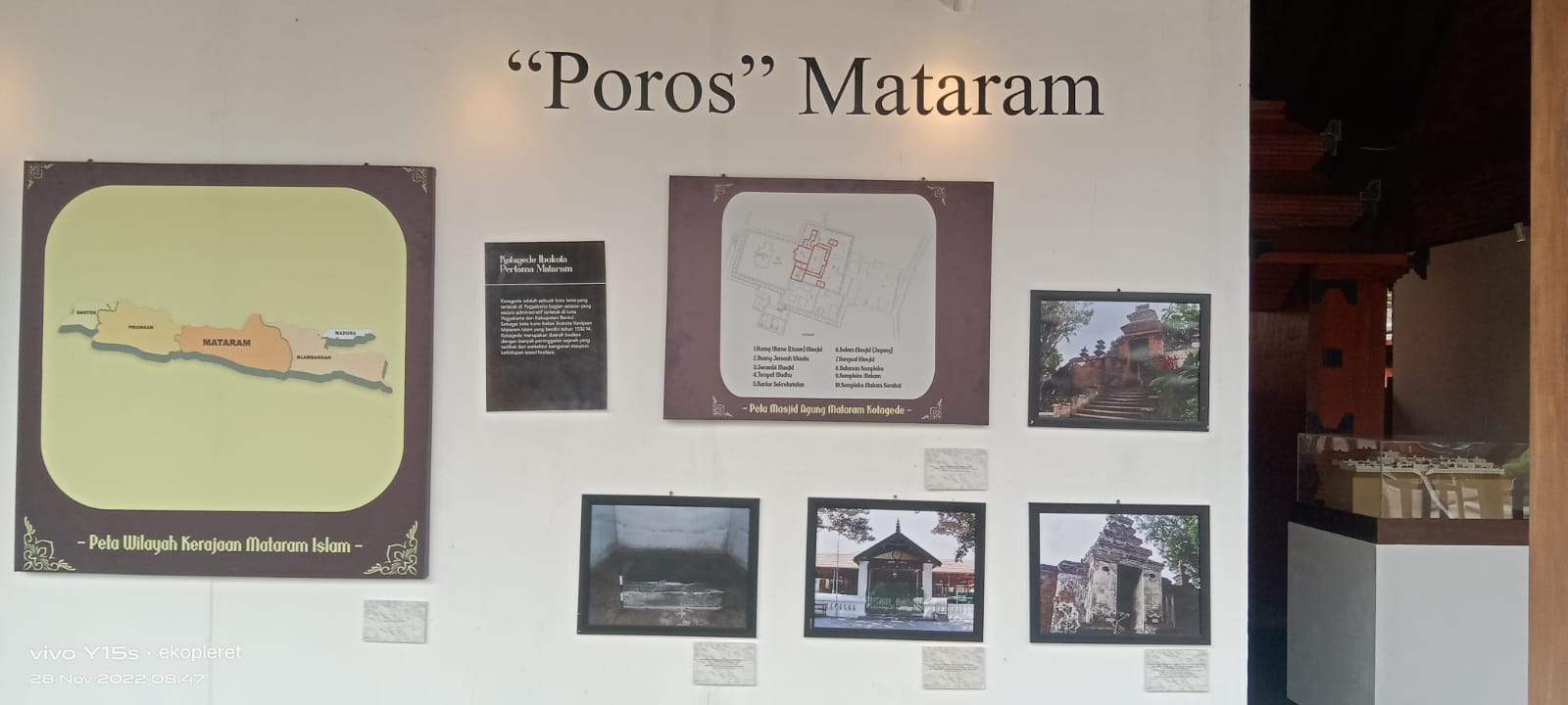 Dalam stand pameran poros mataram ini di tampilkan foto-foto situs peninggalan Mataram Pleret serta foto peninggalan mataram kotagede dan makam imogiri yang merupakan peninggalan sejarah kejayaan Kerajaan Mataram Islam. Selain melihat - lihat stand pameran siswa-siswi SD yang berkunjung juga di putarkan video dokumenter potensi kalurahan pleret di ruang audio visual gerbang pleret, sebagai sarana edukasi kepada masyarakat agar mengetahui sejarah keberadaan mataram islam di pleret era pemerintahan Sultan Agung Hanyokrokusumo sampai dengan era pemerintahan Amangkurat Agung. Raja-raja mataram ini bertahta di Kraton Kerto sampai pindah di Kraton Pleret yang berlokasi di dusun Kedaton.