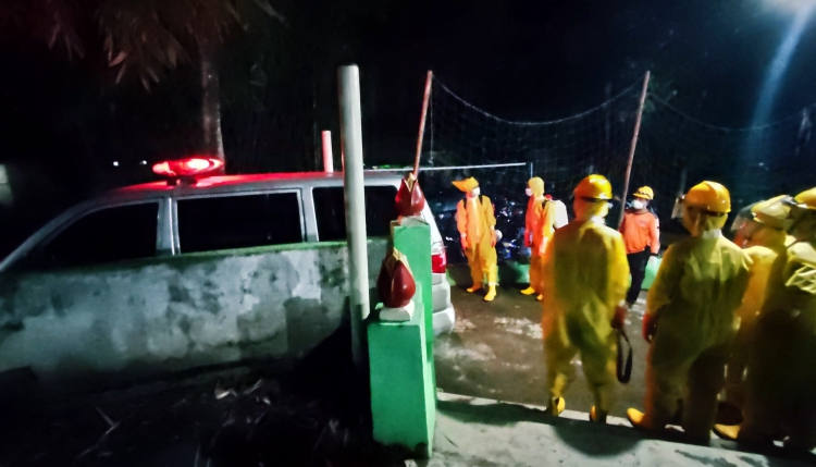 InfoPleret – Relawan Tim Kubur Cepat dusun senden bersama-sama dengan FPRB Kalurahan Pleret melaksanakan prosesi pemakaman secara prokes warga yang terkonfirmasi Covid-19 di makam senden Kalurahan Pleret Kapanewon Pleret Kabupaten Bantul, Kamis (03/11/2022) pukul 21.30 wib.