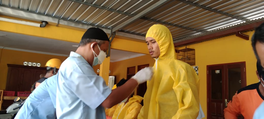 Proses pemakaman salah satu warga yang meninggal dan terkomfirmasi positif Covid-19 berjalan sesuai dengan protokol kesehatan. Pelaksanaan kubur cepat yang di laksanakan oleh Tim Relawan Kubur Cepat Padukuhan Karet sudah di lengkapi dengan APD lengkap dan dalam arahan Relawan FPRB Kalurahan Pleret.