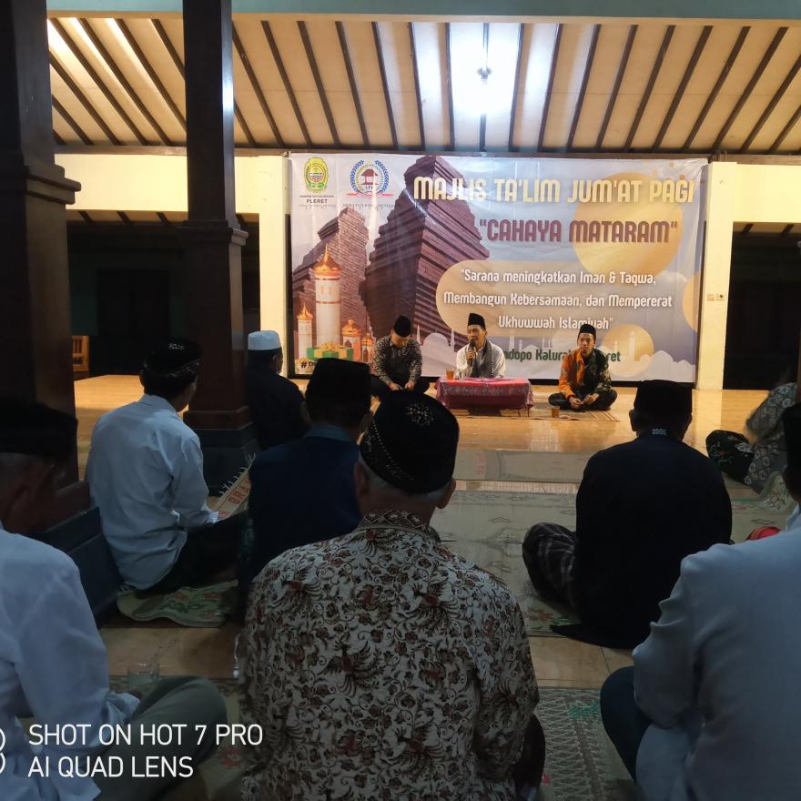InfoPleret - Jum'at 27 Mei 2022 telah dilaksanakan Pengajian Rutin Jum'at Pagi yang diinisiasi oleh Lembaga Pemberdayaan Masyarakat (LPM) Kalurahan Pleret dalam sebuah Majlis Ta'lim Jum'at Pagi dengan nama CAHAYA MATARAM dengan menghadirkan Kyai Slamet Riyadi dari Karanganom sebagai penceramah.