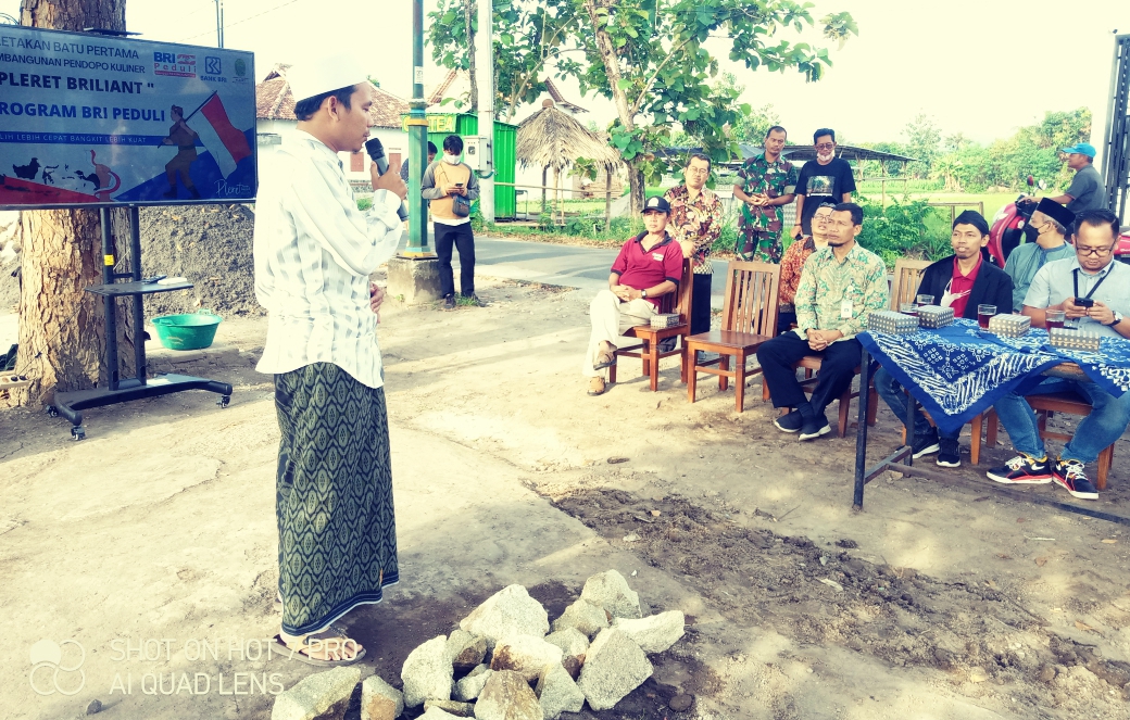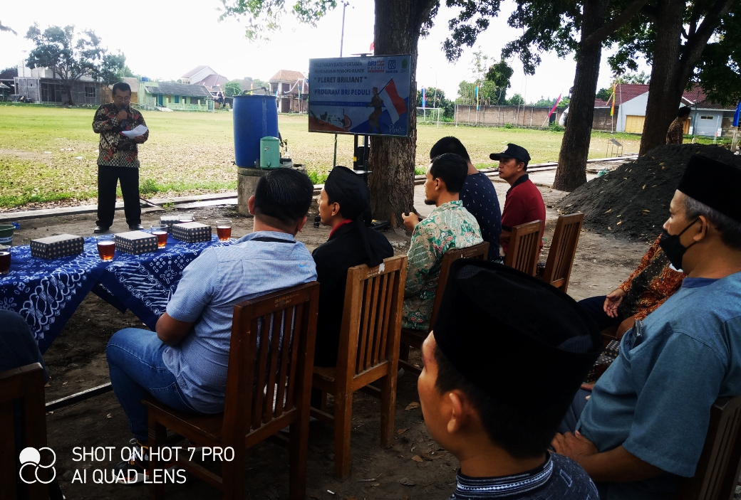 Hadir dalam peletakan batu pertama ini Bapak Reza dari kantor BRI Pusat yang didampingi oleh Pimpinan BRI cabang Bantul Bapak Rizky Farisi, Panewu Anom Kapanewon Pleret, Kapolsek Pleret, Danramil Pleret, Lurah beserta pamong, Ketua Bamuskal serta Pihak ke-3 dari Cv. Burton yang menang tender pelaksanaan pembangunan ini.
