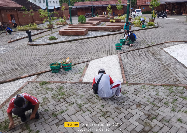InfoPleret - Jum'at 14 Januari 2023 pukul 08.00 WIB. Lurah Pleret Taufiq Kamal, S.Kom., M.Cs. mengintruksikan seluruh pamong dan staf kalurahan untuk melaksanakan giat bersih lingkungan di Gerbang Pleret Arsitektur Gaya Yogyakarta.