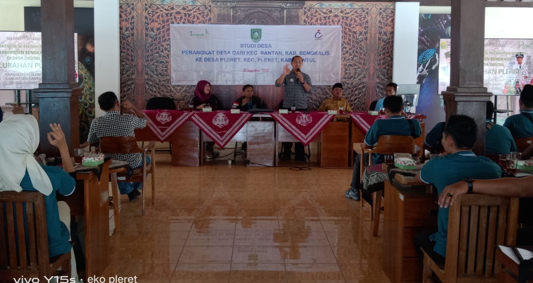 InfoPleret - Rombongan perangkat desa dan Ketua BPD se-Kecamatan Bantan, Kabupaten Bengkalis, melaksanakan studi tiru di Kalurahan Pleret, Bantul. Acara tersebut diinisiasi oleh Lembaga Ceries Kabupaten Bengkalis dengan koordinator Bapak Ruliyono M.Si.