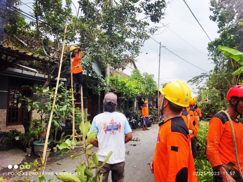 InfoPleret - Ahad (26/02) pukul 08.00 WIB Forum Pengurangan Resiko Bencana (FPRB) Kalurahan Pleret yang dipimpin langsung oleh Ketua Muhammad Rahardian Barnadib serta korlap Sugeng Haryadi dan Tono Purwanto melaksanakan giat rabas-rabas ranting pohon yang mengganggu jaringan listrik di beberapa titik wilayah kalurahan pleret. Hadir dalam kegiatan ini sekitar 25 orang Anggota FPRB, Anggota RAPI Kapanewon Pleret dan beberapa relawan lainnya.