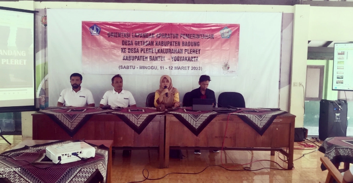 Dalam sambutannya Panewu Pleret Ibu Evie Nur Siti Fatonah, S.Sos., MM. menyampaikan ucapan selamat datang dan terimakasih atas kedatangan tamu rombongan dari Desa Getasan Kecamatan Petang Kabupaten Badung, diharapkan dalam kegiatan orientasi ini nanti dapat saling mengisi dan berdiskusi tentang kemajuan desa yang sudah diterapkan, karena Desa Getasan adalah salah satu desa yang tergolong maju karena mempunyai penganggaran APBDes yang jumlahnya puluhan milyar rupiah.