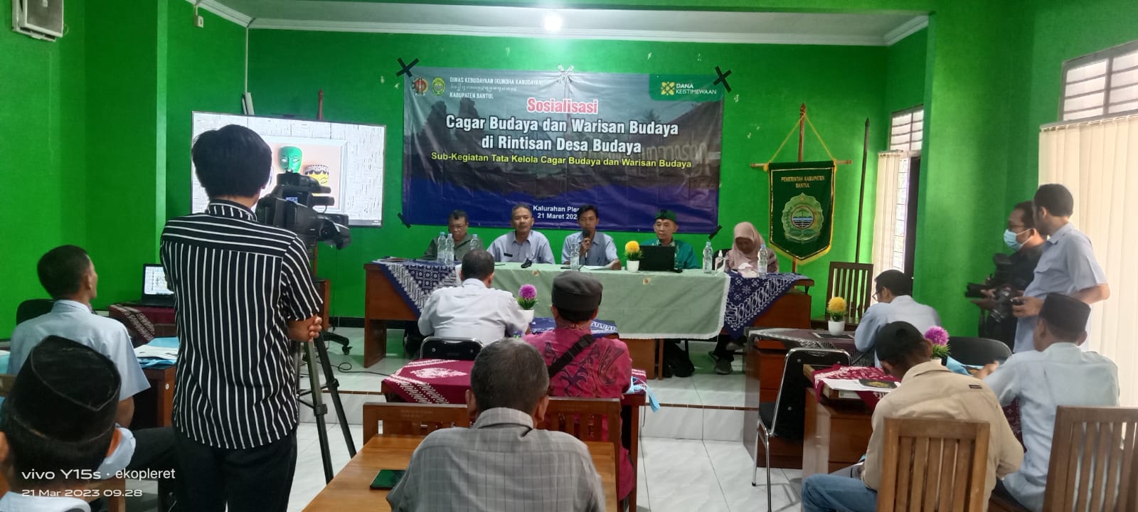 InfoPleret - Pada hari Selasa (21/03/23), Dinas Kebudayaan (Kundha Kabudayan) Kabupaten Bantul, mengadakan kegiatan Sosialisasi Cagar Budaya dan Warisan Budaya di Rintisan Desa Budaya yang bertempat di aula pertemuan Kalurahan Pleret, Bantul. Acara dibuka secara resmi oleh Kepala Dinas Kebudayaan (Kundha Kabudayan) Kabupaten Bantul, Nughoro Eko Setyanto, S.Sos., M.M dan dihadiri oleh perangkat desa, perwakilan lembaga kalurahan dan masyarakat sekitar situs/cagar budaya yang merupakan pemerhati cagar budaya/warisan budaya di Kalurahan Pleret.