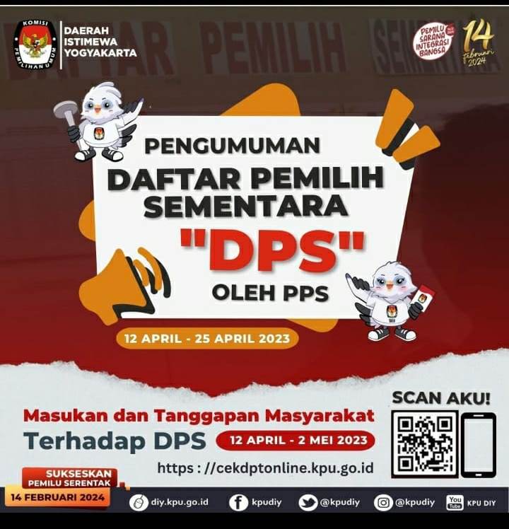 PPS mengumumkan DPS mulai hari Rabu tanggal 12 April sampai dengan Selasa tanggal 25 April 2023. PPS siap menerima tanggapan dan masukan masyarakat terhadap DPS mulai hari Selasa tanggal 25 April sampai dengan Selasa tanggal 2 Mei 2023 (selama 21 hari) di Sekretariat PPS Kalurahan Pleret.Tanggapan dan masukan masyarakat disampaikan kepada PPS dengan menunjukkan dan menyerahkan salinan KTP-el atau KK dari pemilih yang informasinya diusulkan untuk diperbaiki serta mengisi formulir Model A-Tanggapan. Masyarakat dapat melakukan pengecekan "Apakah sudah terdaftar sebagai PEMILIH" melalui website dan aplikasi https://cekdptonline.kpu.go.id/. Apabila belum terdaftar bisa menyampaikan tanggapan dan masukan kepada PPS Kalurahan Pleret pada jam layanan dengan menghubungi kontak person atas nama Runtut Untoro di No HP 087839338373.