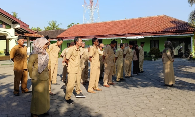 Giat apel pagi Pamong Pleret pada Senin (18/03) di halaman Kalurahan Pleret merupakan sarana disiplin mengenai waktu serta sarana tanggung jawab setiap pegawai dan sebagai evaluasi kegiatan yang telah berjalan.