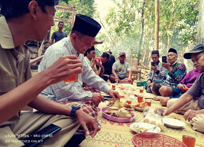 Prosesi acara dimulai dengan do'a bersama yang dipimpin oleh Kyai Dain Joned yang merupakan putra dari Alm. Kyai Joned. Do'a ini menjadi momen yang penuh makna di mana para hadirin bersatu dalam kebersamaan dan spiritualitas. Setelah do'a bersama, tumpeng dan ingkung, hidangan tradisional khas Jawa, dipotong sebagai simbol keberkahan dan keberlimpahan.