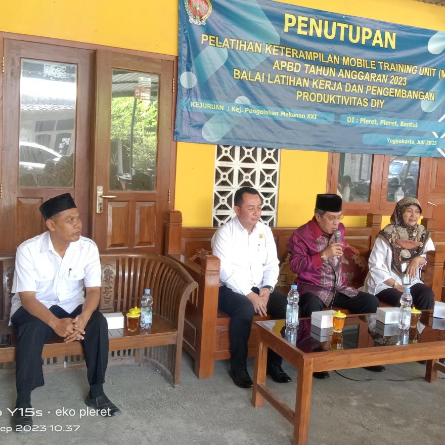 Pleret, 9-9-2023 // Lurah Pleret yang di wakili Kamituwo Pleret Bapak Anang Jatmiko menutup pelatihan ketrampilan mobile training di padukuhan Karet.