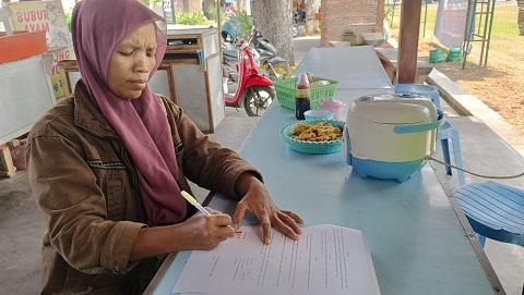 Para penyewa diminta menandatangani surat pernjanjian sewa los kuliner diatas materai selama 1 tahun dan memeriksa kembali perjanjian sewa atau kontrak sewa yang telah disepakati antara Pemerintah Kalurahan Pleret dengan para penyewa.