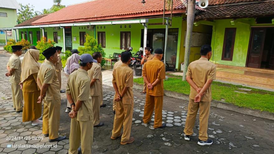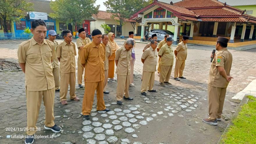 InfoPleret. Pemerintah Kalurahan Pleret menggelar apel rutin Senin pagi pada hari ini 25 November 2024, pukul 08.00 WIB, bertempat di halaman kantor Kalurahan Pleret. Apel dihadiri oleh seluruh pamong kalurahan, dipimpin langsung oleh Carik Pleret, Bapak Iwan Alim Sunu Purwoko, SP, dengan Bapak Sudebyo, staf Kalurahan Pleret, bertindak sebagai komandan apel.