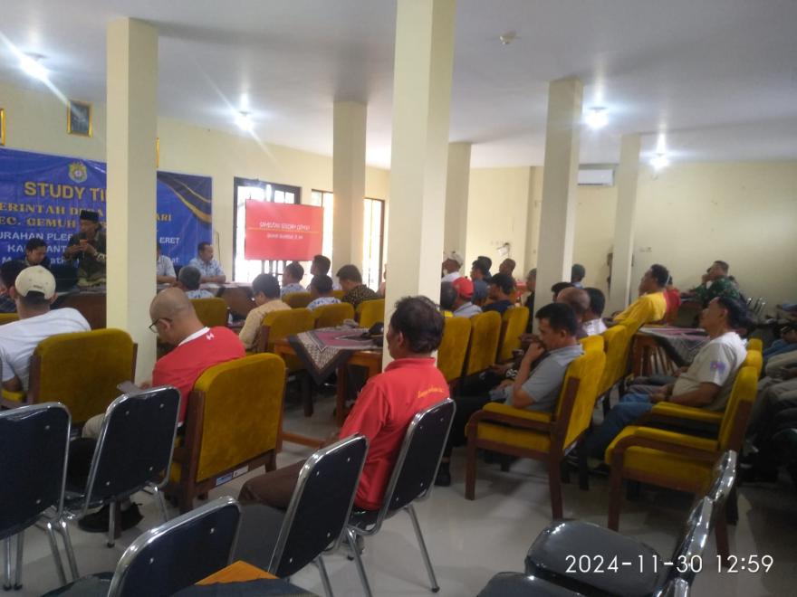 infoPleret- Sebanyak 55 orang dari Pemerintah Desa Jenarsari, Kecamatan Gemuh, Kabupaten Kendal, melakukan kunjungan kerja ke Kalurahan Pleret di Ruang Sayap Timur pada Sabtu, 30 November 2024 pukul 11.00 WIB. Kunjungan ini bertujuan untuk mempelajari lebih lanjut tentang penerapan digitalisasi di kalurahan, yang dibawakan oleh narasumber utama, Lurah Kalurahan Pleret. Hadir pada kesempatan ini Sekcam Gumuh Bapak Rahmatt Rahardja ST, MA beserta jajarannya, Kepala Desa Jenarsari Bapak Saiful Mujab bersama para jajarannya, Kepala BPD Desa Jenarsari Bapak H. Mundakir, S.IP beserta anggota dan Lembaga Desa (Ketua RT dan RW) se Desa Jenarsari, Babinsa dan Bhabinkamtibmas Desa Jenarsari.